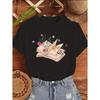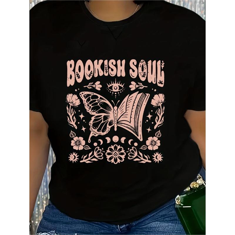 Womens Bookish Soul Graphic Tee Black With Pink Floral Print Casual Short Sleeve Trendy Top For Book Lovers