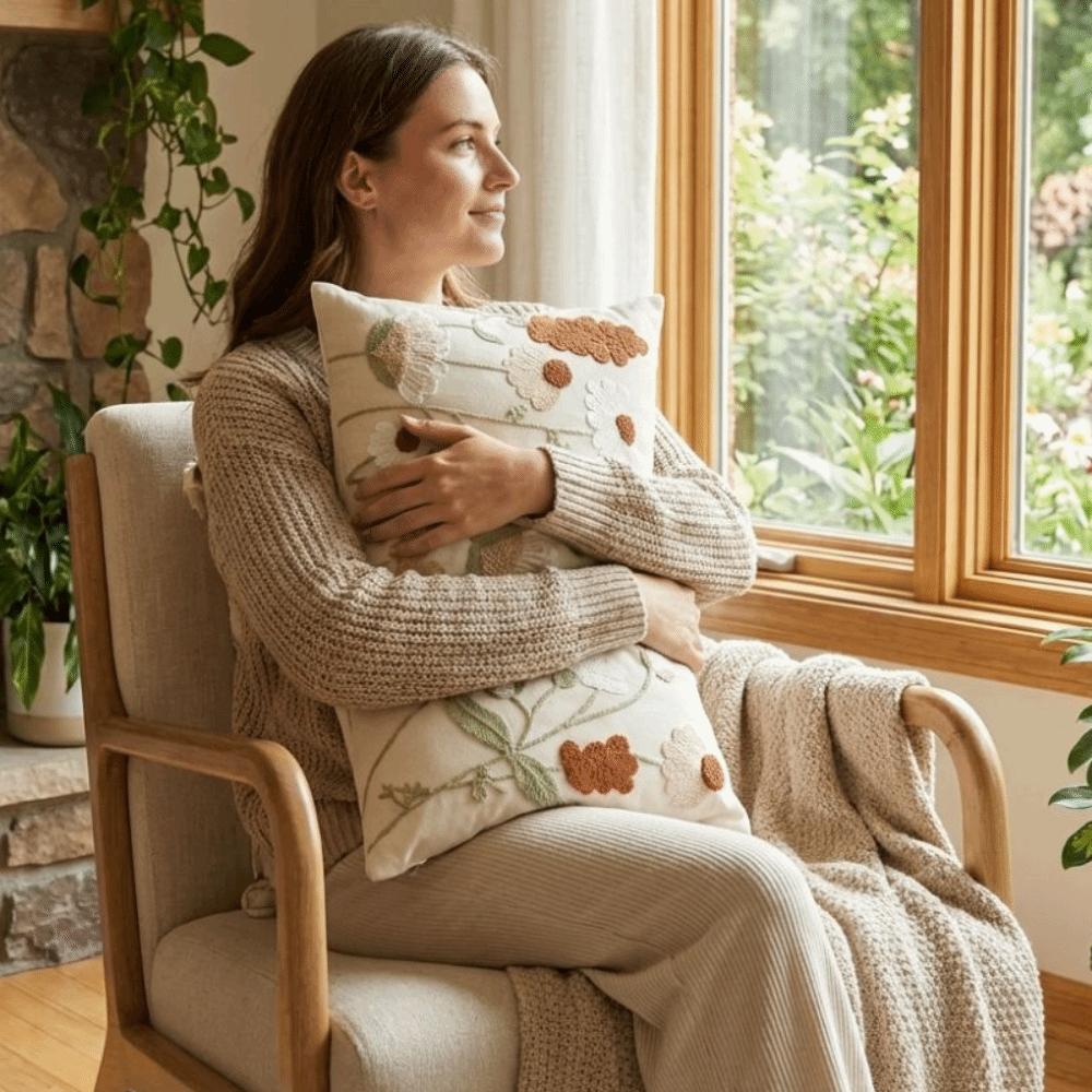 Pastoral Floral Embroidered Cushion Cover Canvas Throw Pillowcase Small Fresh Pillowslip Bedroom
