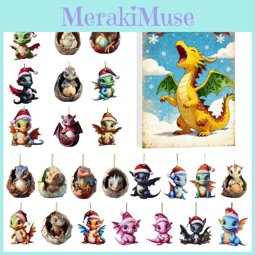 This Christmas countdown calendar features a cute, mini flying dragon design made from durable acrylic material. It includes 24 individual parts, perfect for festive decorating. The flat ornament style adds a unique touch to holiday tree decorations. Suitable for parties, gift exchanges, or as a thoughtful gift for friends and family. Wipe clean with a soft cloth to maintain its vibrant colors.