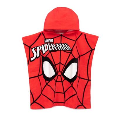 Poncho de bain enfant multicolore rouge et bleu à capuche – serviette douce et absorbante en polyester
