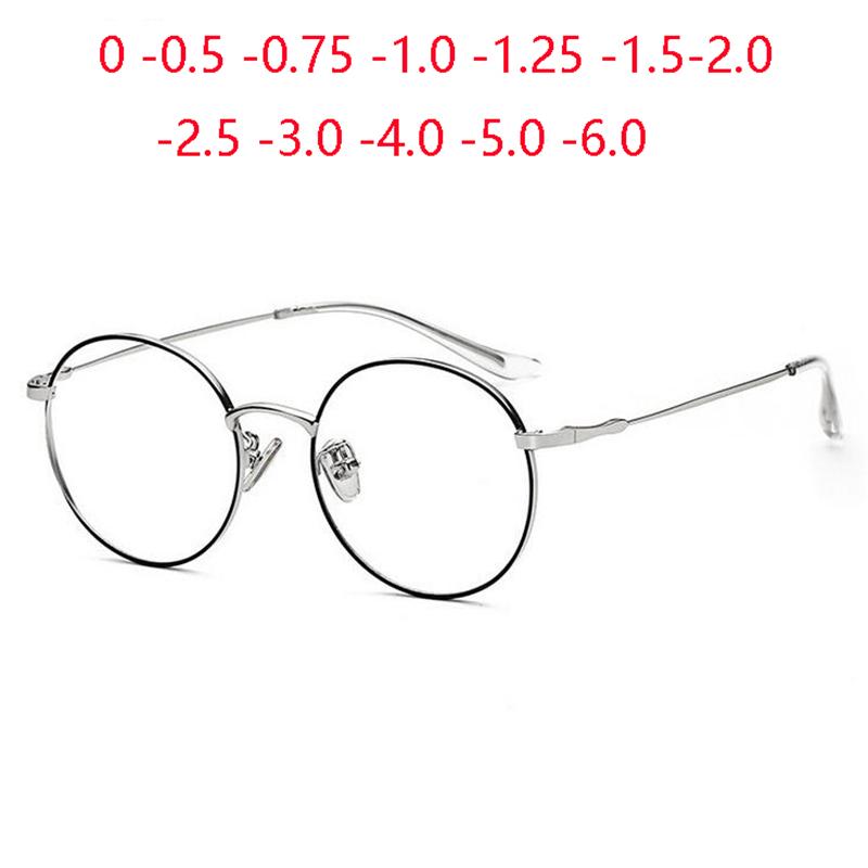 Metal Anti Blue Light Round Prescription Glasses for Women Men Students Myopia 0 to -6.0 Diopters