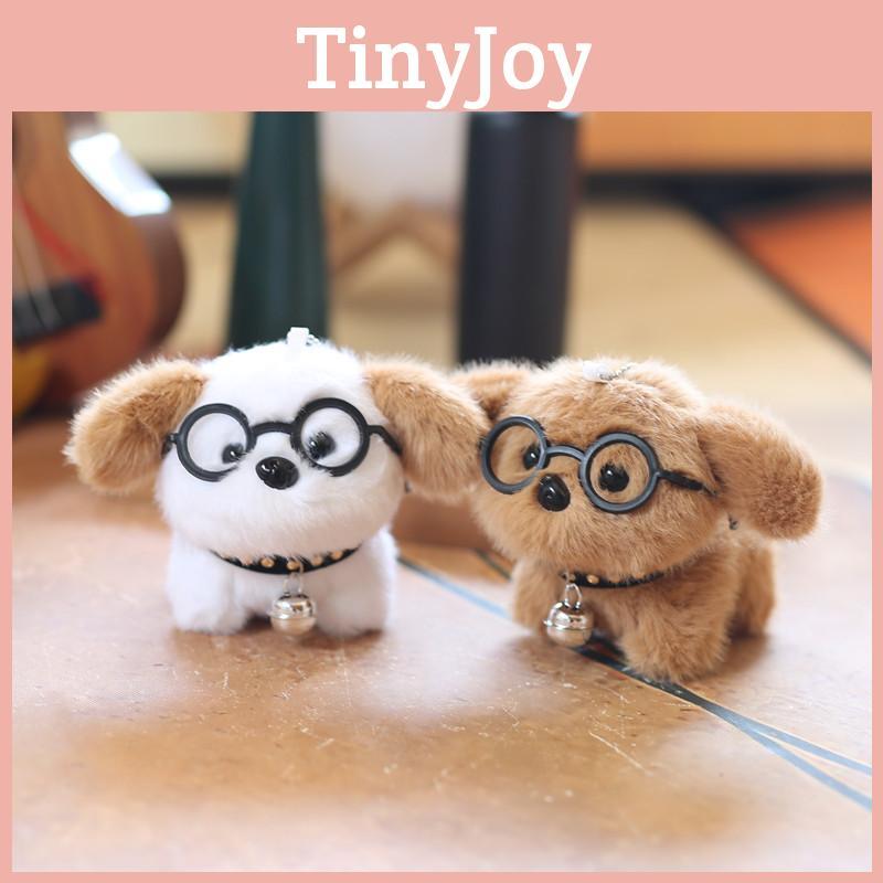 Adorable Plush Eyeglasses Dog Keychain Cute Cartoon Animal Bag Charm Stuffed Doll