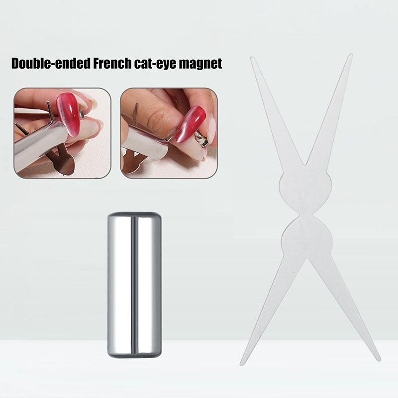 Sada magnetů pro francouzskou manikúru s dvojitou hlavou, kombinace magnetické tyčinky Cat Eye, magnet pro gelový lak na nehty s V-tvarem, manikúra DIY