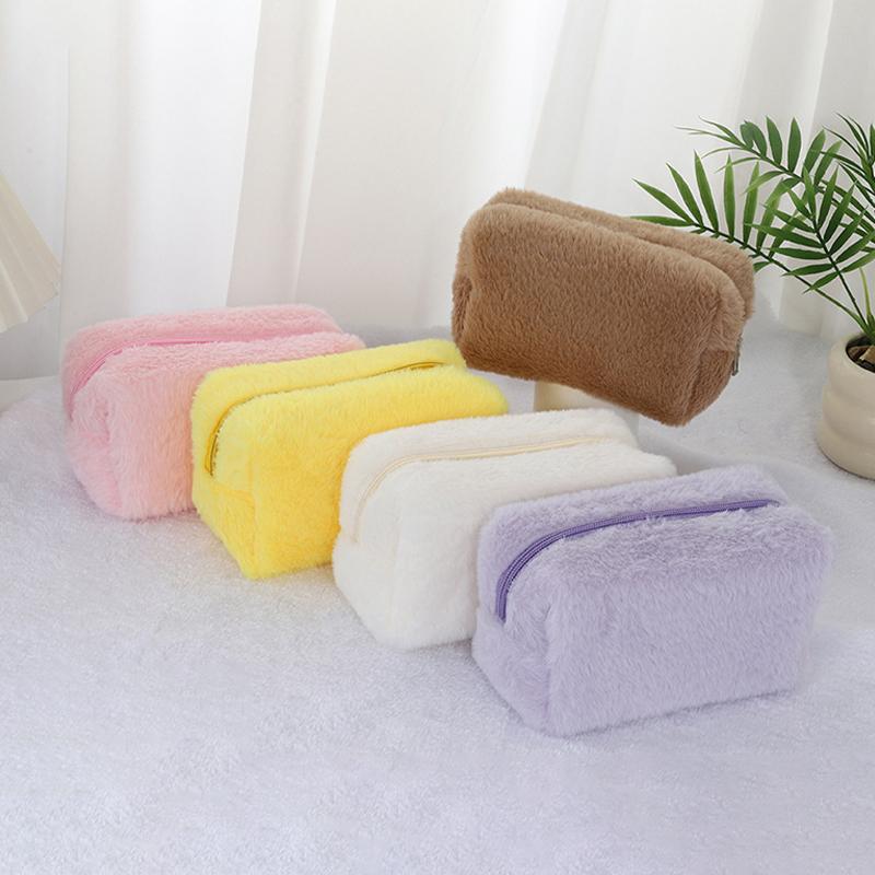 Plush Cosmetic Bag Convenient Storage Bag Large Capacity Toiletry Bag Multi-Layered Categorized Bag