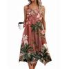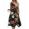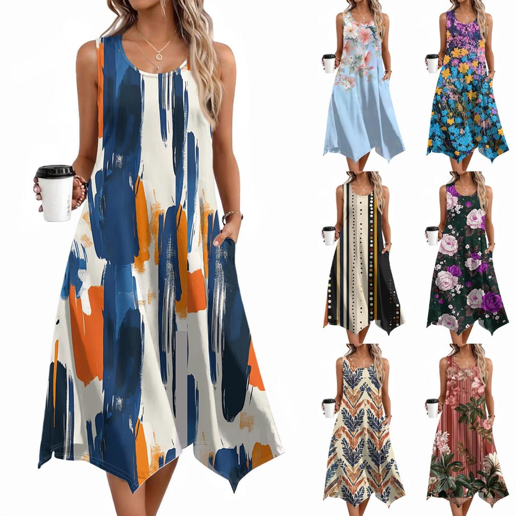 Women Casual Sleeveless Summer Dresses Spring Crewneck Patchwork Boho Floral Ruffle Cocktail Party Midi Dress