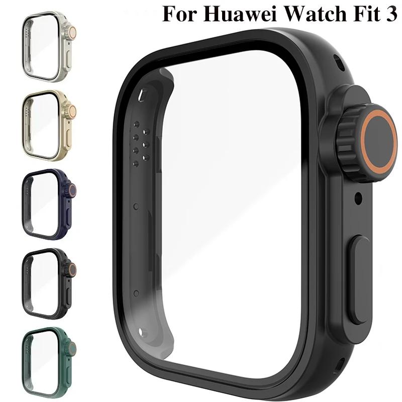 Change To Ultra Case for Huawei Watch Fit 3 Tempered Glass Cases Cover Screen Protector for Huawei Watch Fit3 Upgrade to Ultra 2