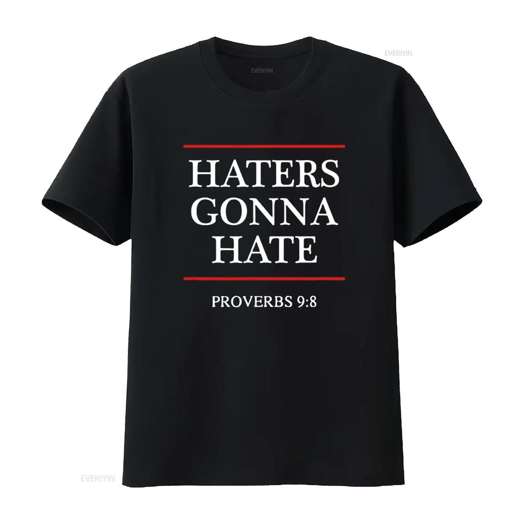 Mens Haters Gonna Hate Proverbs 9 8 Funny Bible Nine Eight T Shirt Black vintage Washed Stretched fashion Soft
