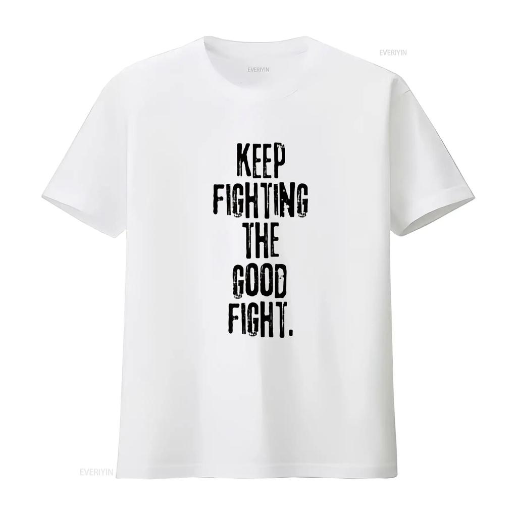 Mens Positive Affirmation T Shirt Keep Fighting the Good Fight White XL vintage Washed homme Stretched fashion Comfortable
