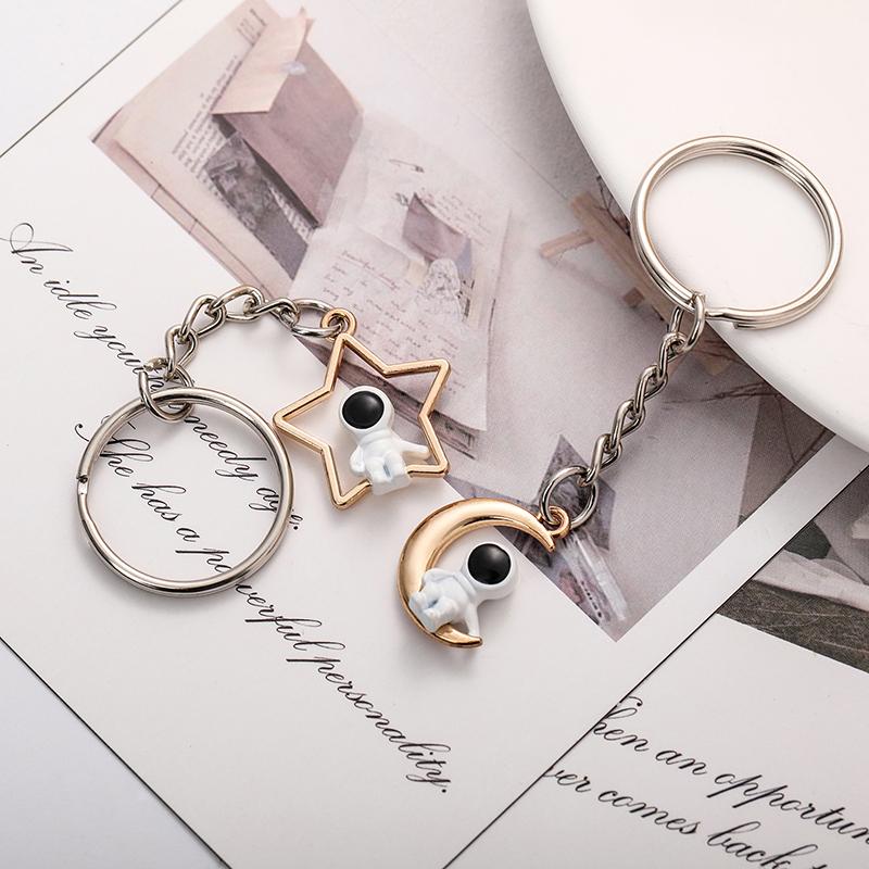 Creative Design Star Moon Astronaut Couple Keychain Sweet Romantic Jewelry Backpack Pendant