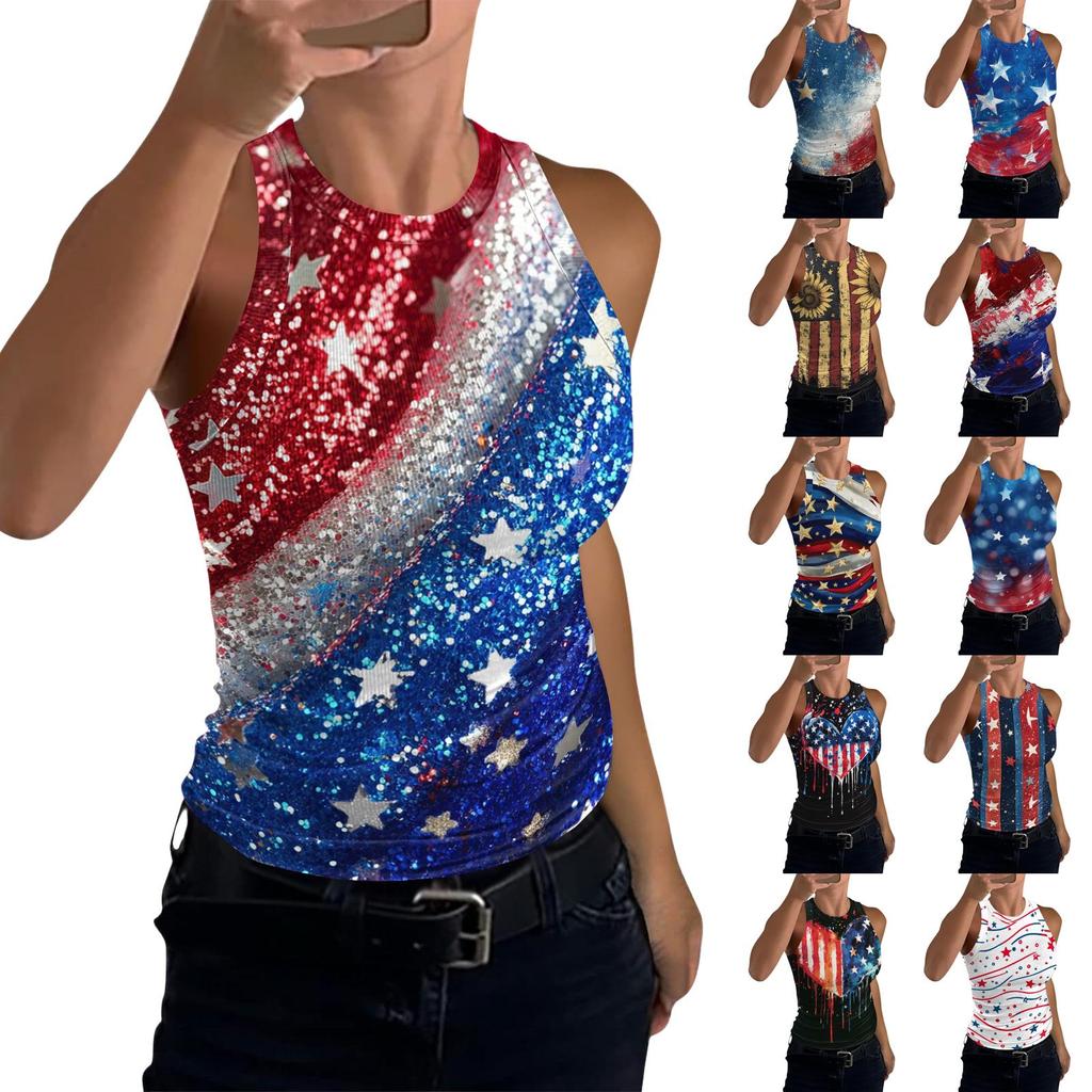Women's Fashion Round Neck Independence Day Print Sleeveless Vest Top