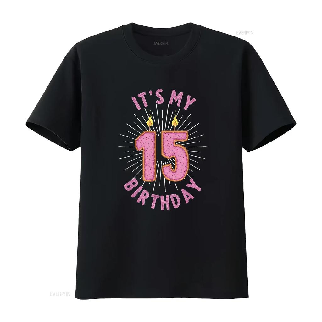 Womens 15 Year Old Girls 15Th Birthday Funny Donut Anniversary T Shirt Black 2XL vintage Washed Breathable Slightly fashion