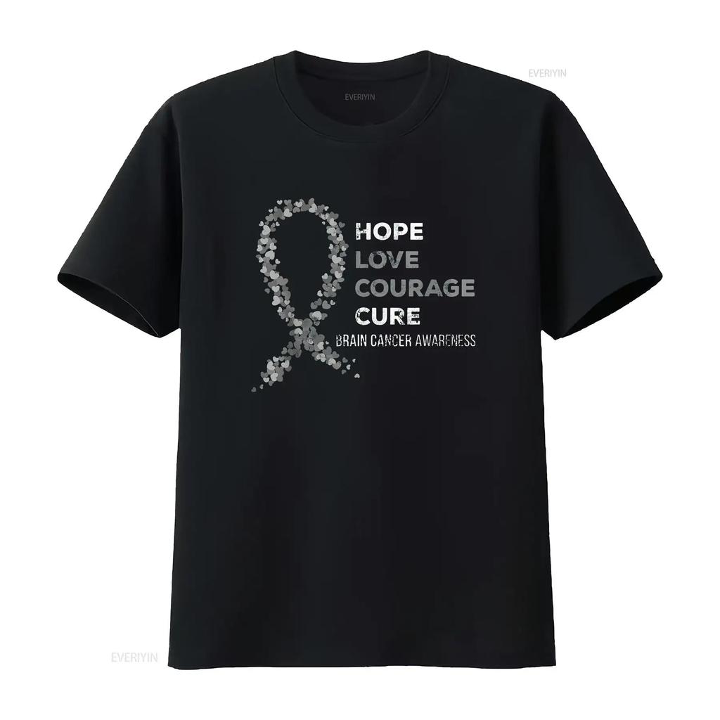 Womens Hope Love Courage Support Brain Cancer Awareness T Shirt Black 2X Large vintage Washed fashion Stretched homme Slightly