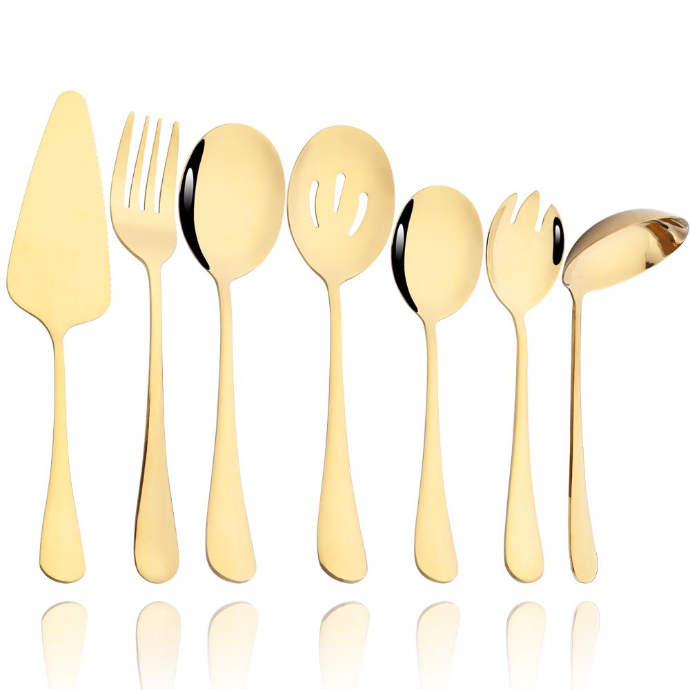 Service Gold Dinnerware Stainless Steel Cutlery Set Soup Spoon Flatware Salad Fork Cake Shovel Set Kitchen Tableware Set