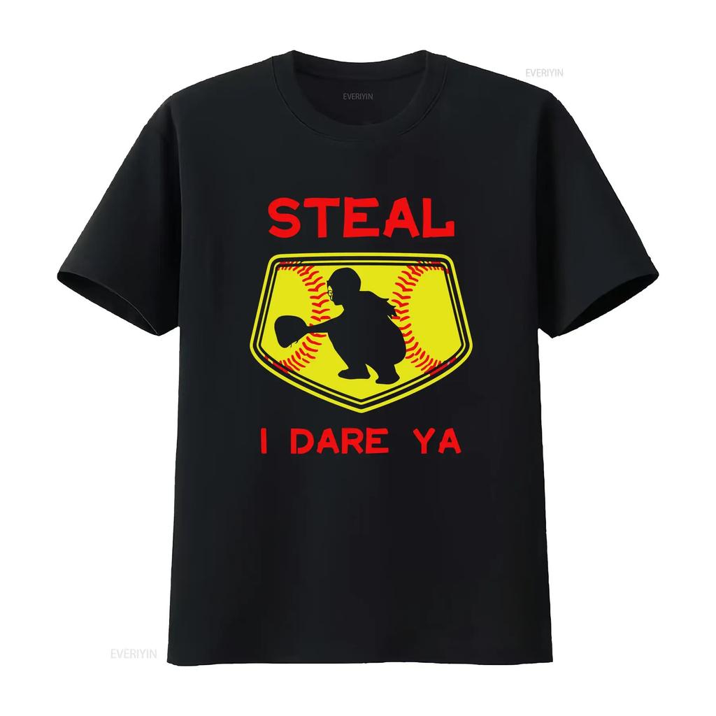 Steal I Dare Ya Softball Catcher T Shirt Funny For Players Bas vintage Washed Top For Everyday Wear homme graphic