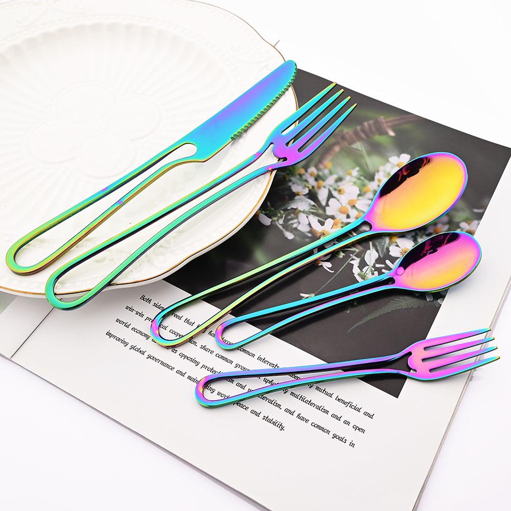 5Pcs Knife Fork Spoon Flatware Set Rainbow Hollowed Out Handle Dinnerware Set Stainless Steel Western Food Suit Silverware Set