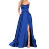 Večerní šaty Špagetový pásek Vysoký rozparek na ramenou Bez rukávů Boční kapsy A-line Délka podlahy Satén Čistá barva Prom Banket Party