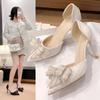Elegant Pearl Bowknot Bride Wedding Shoes Woman Sexy Pointed Toe Stiletto High Heels Pumps Women Shiny Crystal Dress Party Shoes