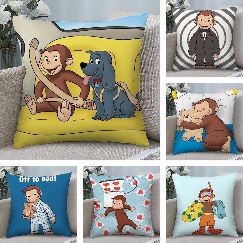 GeorgeThe Curious Monkey Cushion Cover Soft Plush Fabric DoubleSided Printed Sofa Cushion Cover for All Seasons Home Decor Gift