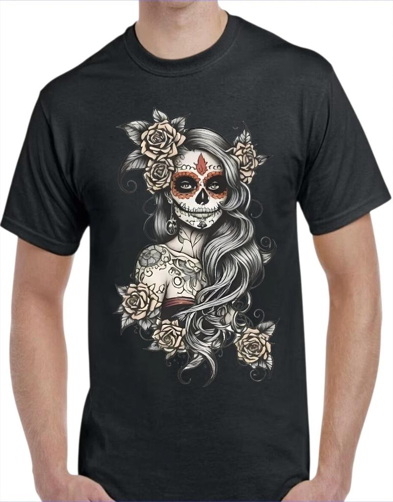 Female Sugar Skull Men's T-Shirt White or Black or Gray Small to 3X-Large