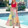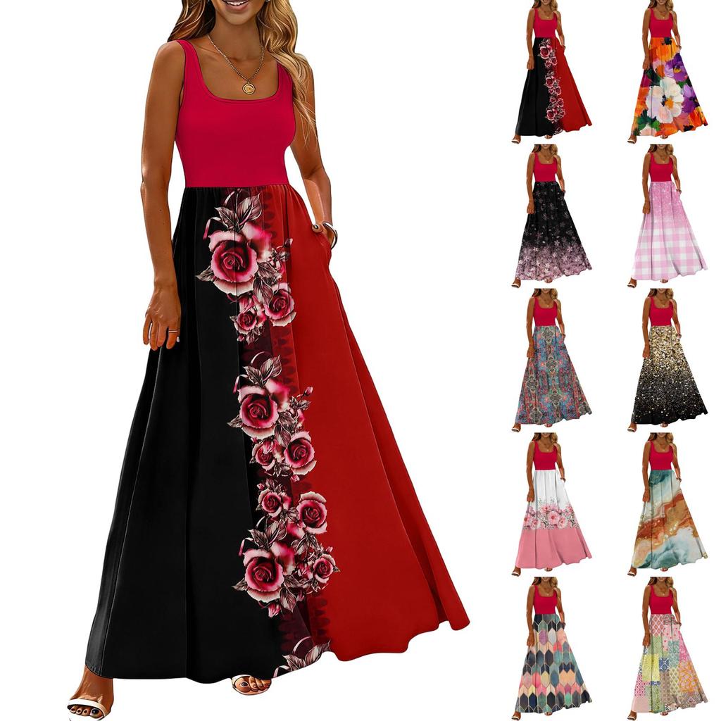 Ladies' floral print summer casual and fashionable sleeveless long dress