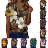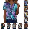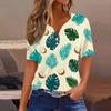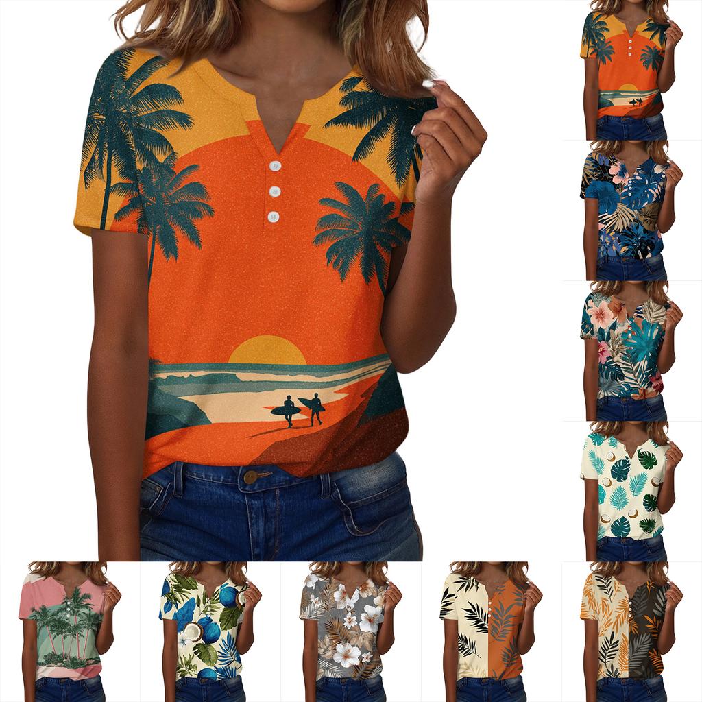Women's fashionable casual Hawaiian print V-neck short-sleeved button-down T-shirt top
