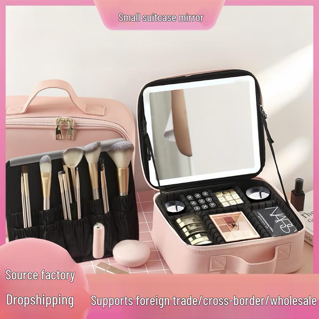 Portable LED Makeup Bag with Full Screen Mirror - Large Capacity Cosmetics Organizer