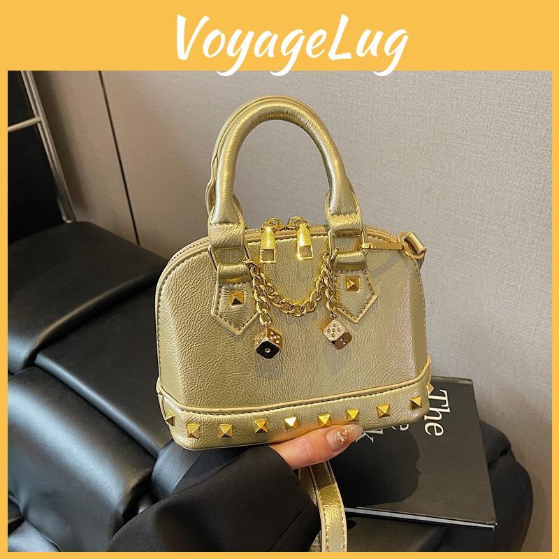 Minimalist Shell Handbag For Women Pu Leather With Metal Rivets Casual Crossbody For Spring Outfits