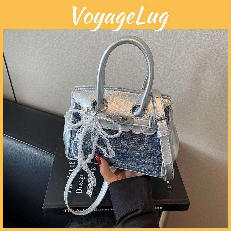 Retro Denim Shoulder Bag For Women Summer Daily Use Pu Material