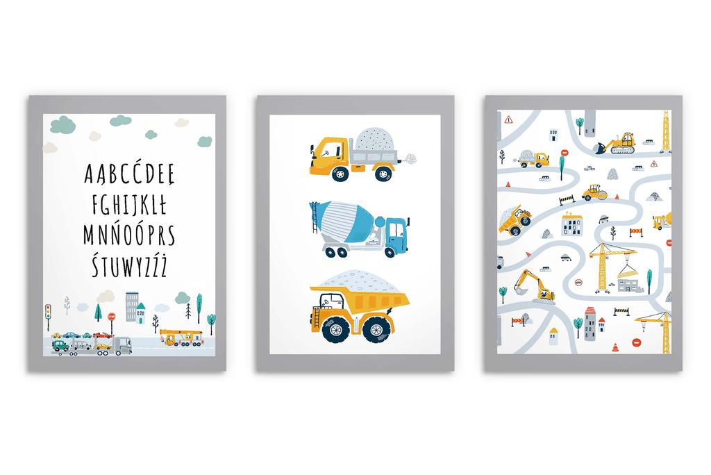 Zestaw Plakatów dla dziecka Alfabet Auta Dziecięce Obrazy dla Chłopca 30x40
