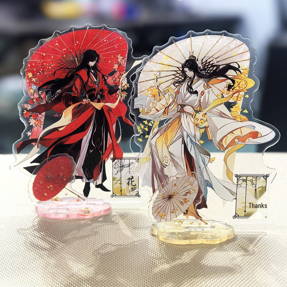 This beautifully crafted acrylic standee features the captivating duo, Xie Lian and Hua Cheng, in an enchanting umbrella-holding pose. Constructed from high-quality acrylic, it offers a clear and vibrant display of the beloved characters. Perfect for fans of the series, this display piece adds a touch of elegance and charm to any collection or desk.