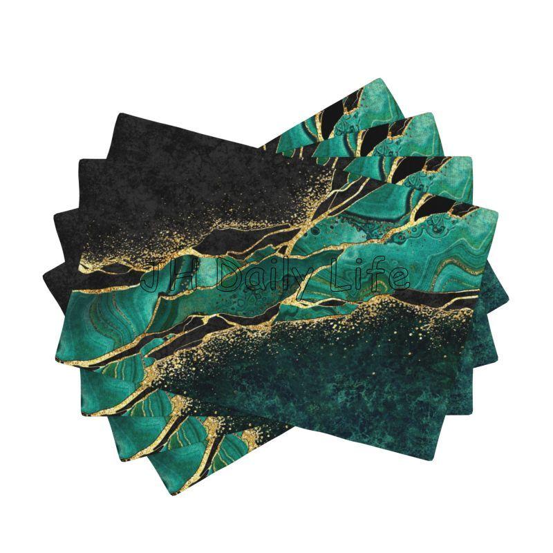 Green Gold Marble Table Placemats Set of 4 Linen Waterproof Heat Resistant Non Slip Washable Linen Table Mats 18x12 Inches