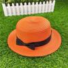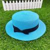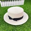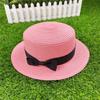 Korean Style Women's Straw Sun Hat with Flat Brim and Bow – Trendy Summer Beach Hat for Sun Protection
