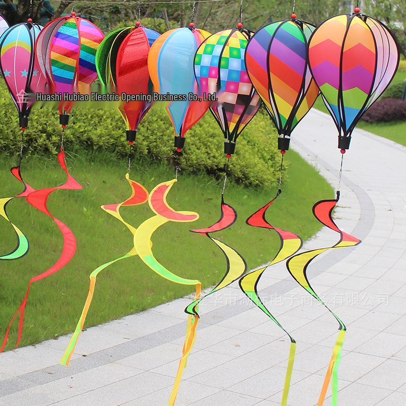Rainbow Hot Air Balloon Wind Spinner: Rotating Seven-Color Garden Pinwheel with Sequins for Outdoor Decoration