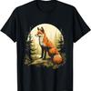 Fox Wildlife Floral Colorful Artwork Portrait Animal Art T-Shirt