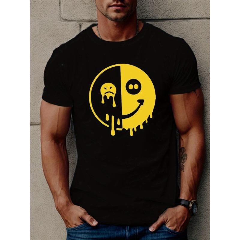 European sizes Melting Face Print Tees For Men, Casual Crew Neck Short Sleeve T-Shirt, Comfortable Breathable T-shirt For Summer