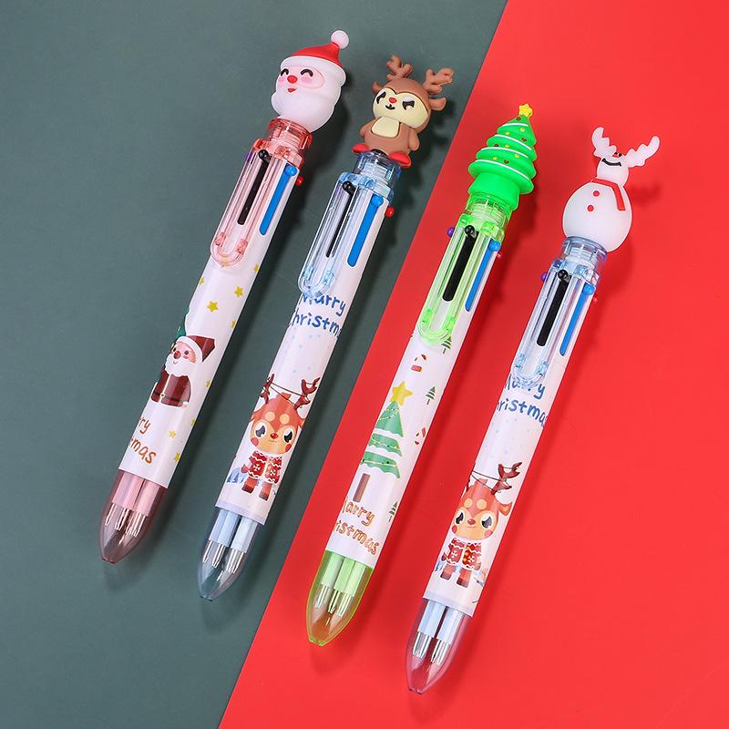 1pc 6Colors Random Christmas Theme Ballpoint Pen Cute Santa Claus Multicolor Marker Pens For Student Stationery Gift Comfortable Grip Stationery Schoo