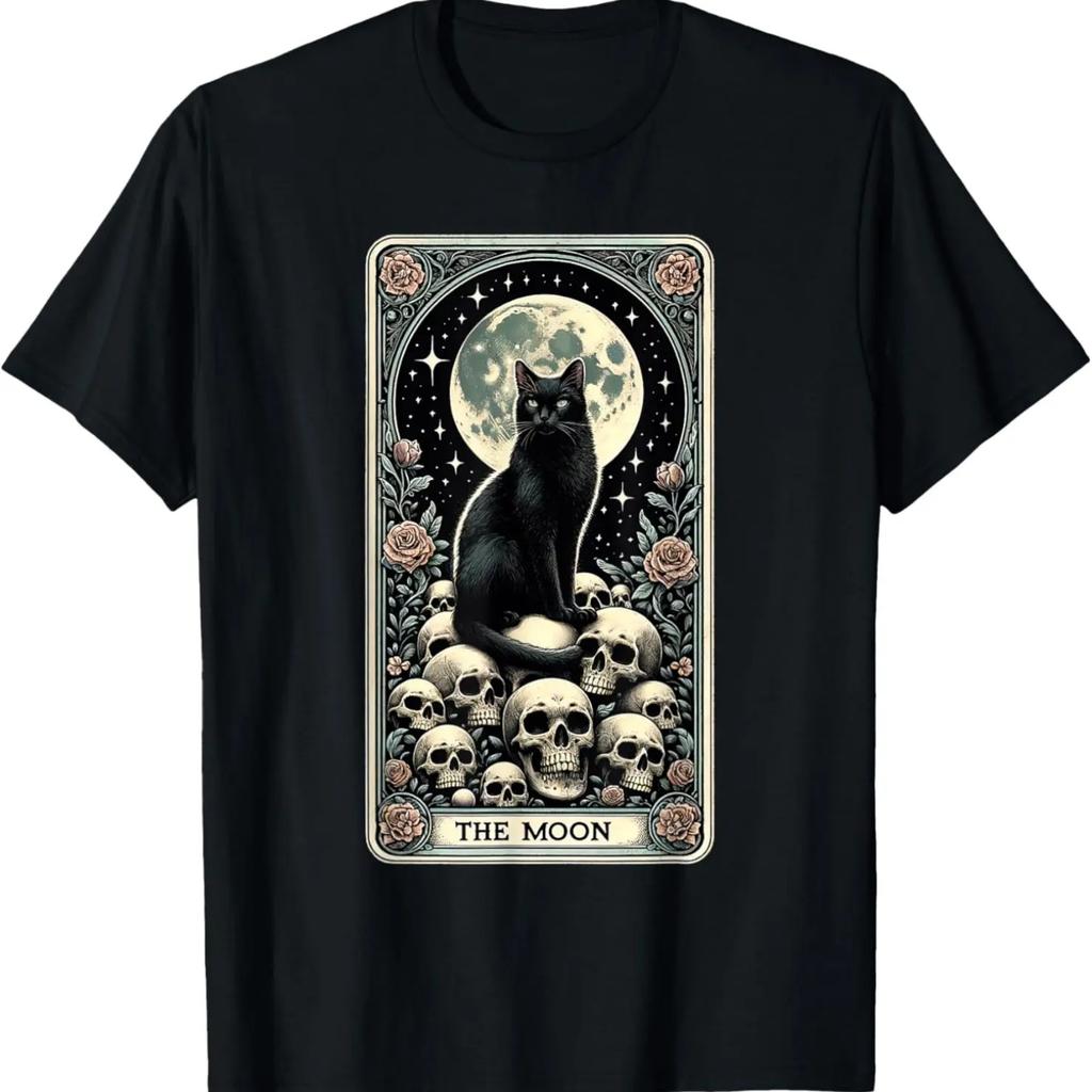 Karta Tarotu Měsíc Čarodějnický Gotický Černá Kočka Na Lebkách A Růži Tričko