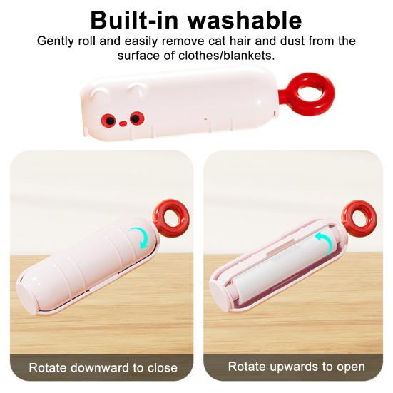 Adorable Cat-Shaped Design With Hanging Ring: Featuring a charming cartoon cat appearance complete with cute earrings and expressive eyes, this lint roller adds a playful touch to your daily routine. The integrated hanging ring allows for easy storage and portability, making it simple to carry in bags or hang in closets without taking up space.