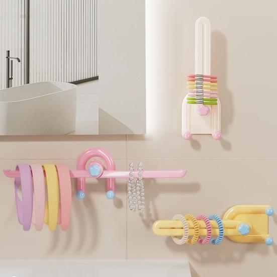 Keep your hair accessories organized and easily accessible with this hair tie holder. Featuring a strong adhesive installation, it ensures stable load-bearing and won't fall off, safely storing all types of hair ties, hair ropes, bands, and rubber bands. The multi-rod partitioned design offers layered hanging rods to prevent tangles and clutter.