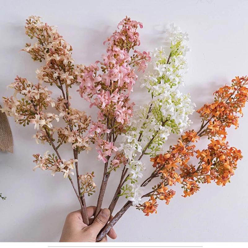 Simulation Lilac Branches Silk Fake Flowers Wedding Decor Murraya Paniculata Green Plant Simulation Pink Flower Hall Decoration