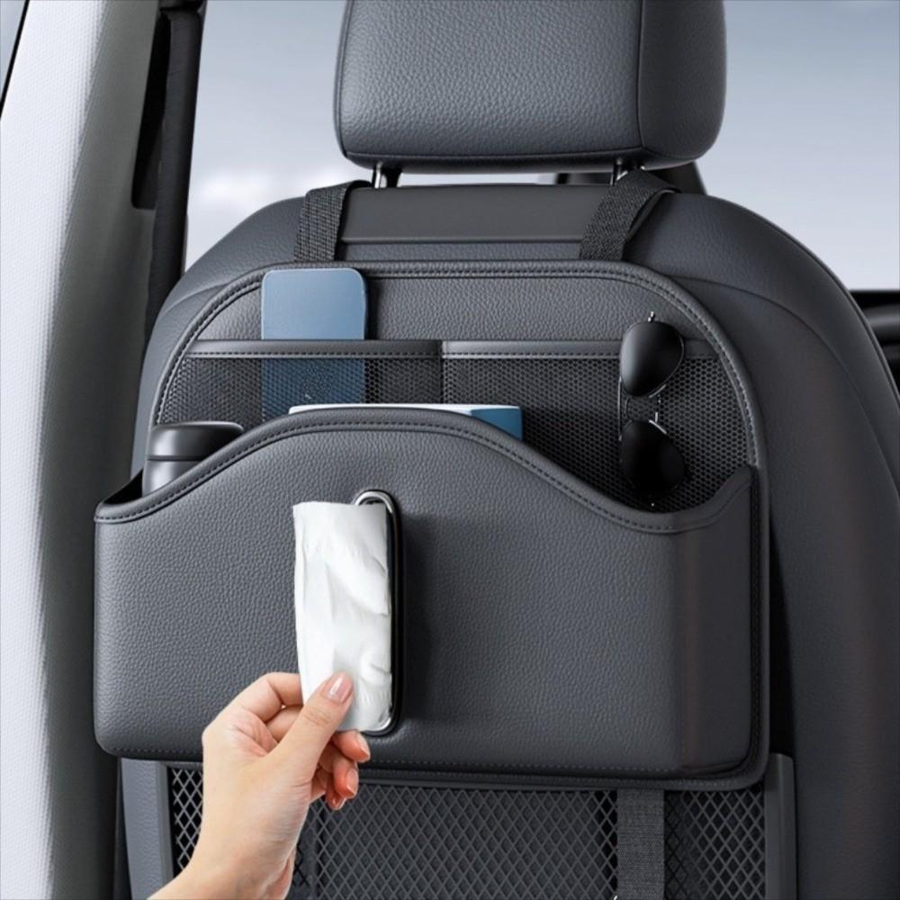 High-grade Seatback Storage Bag Leather Net Pocket Tissue Holder Car Back Seat Organizer Vehicle