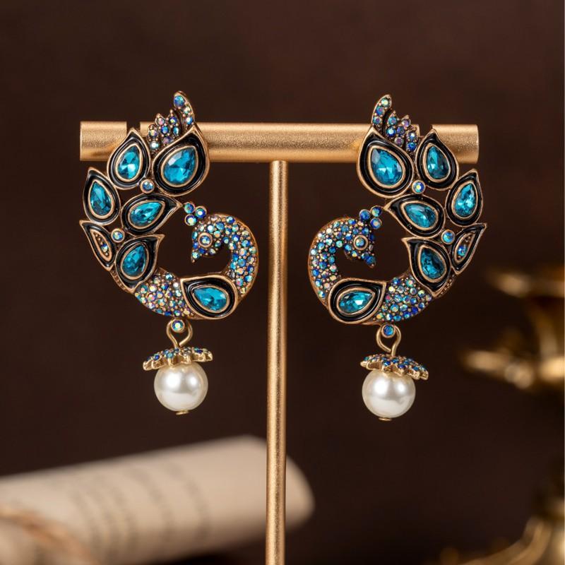 Vintage Set With Diamonds Peacock Pearls Tassel Earrings Court Style