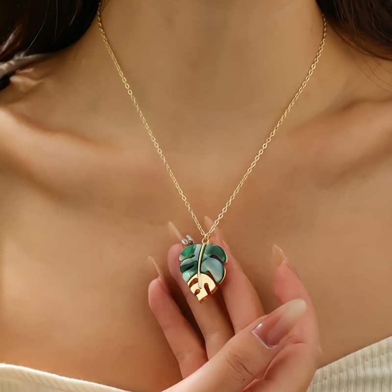 Bohemian Pendant Necklace, Elegant and Graceful, Irregular Leaf Patchwork Fashion, Suitable for Women's Daily Wear or Casual Vacation, 1pc