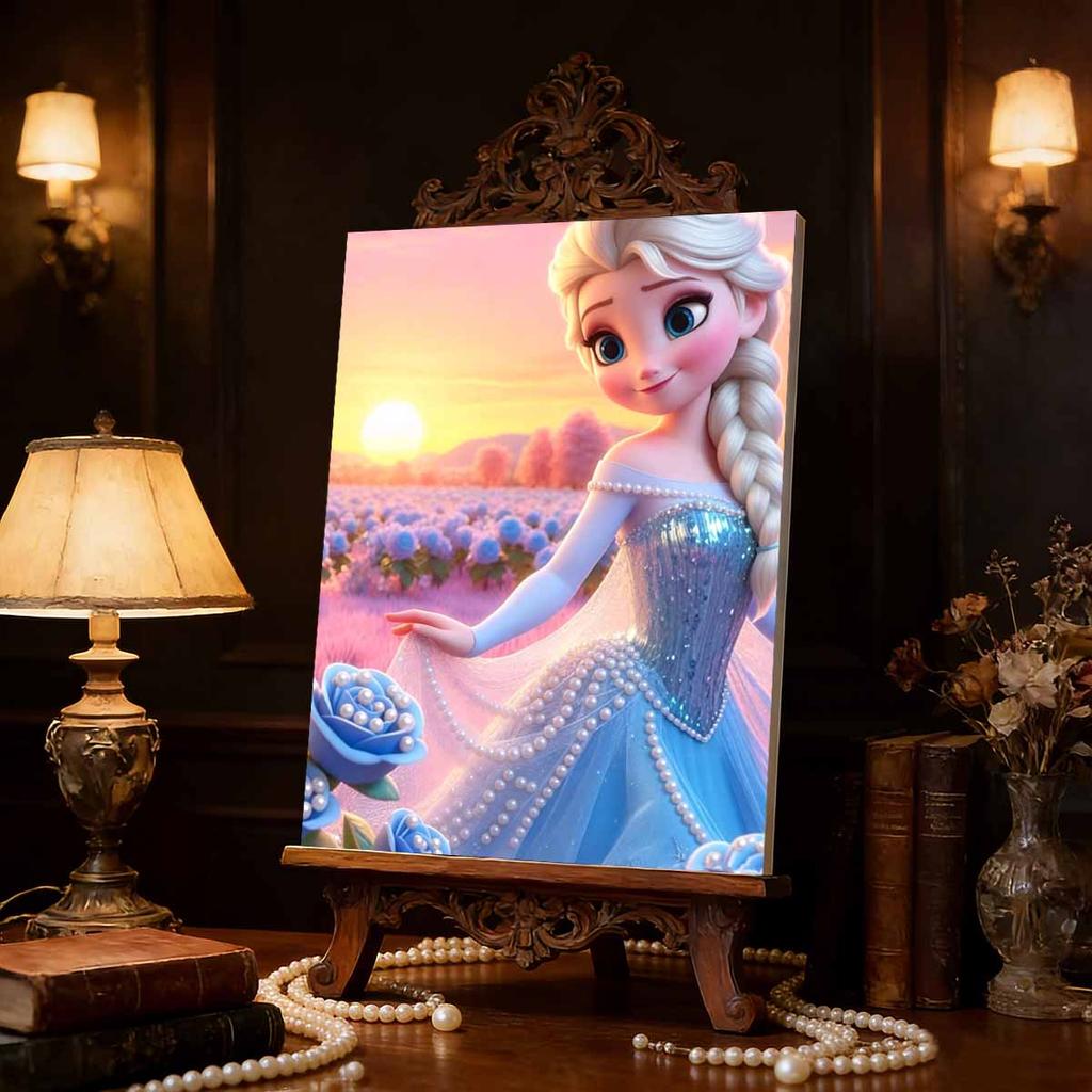 Blue Rose Sunset Elsa Pearl-Inlaid Frameless Art | Handmade Pearl Craft, Blue Rose Theme, for Soft Dreamy Home Decor & Gift Option