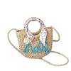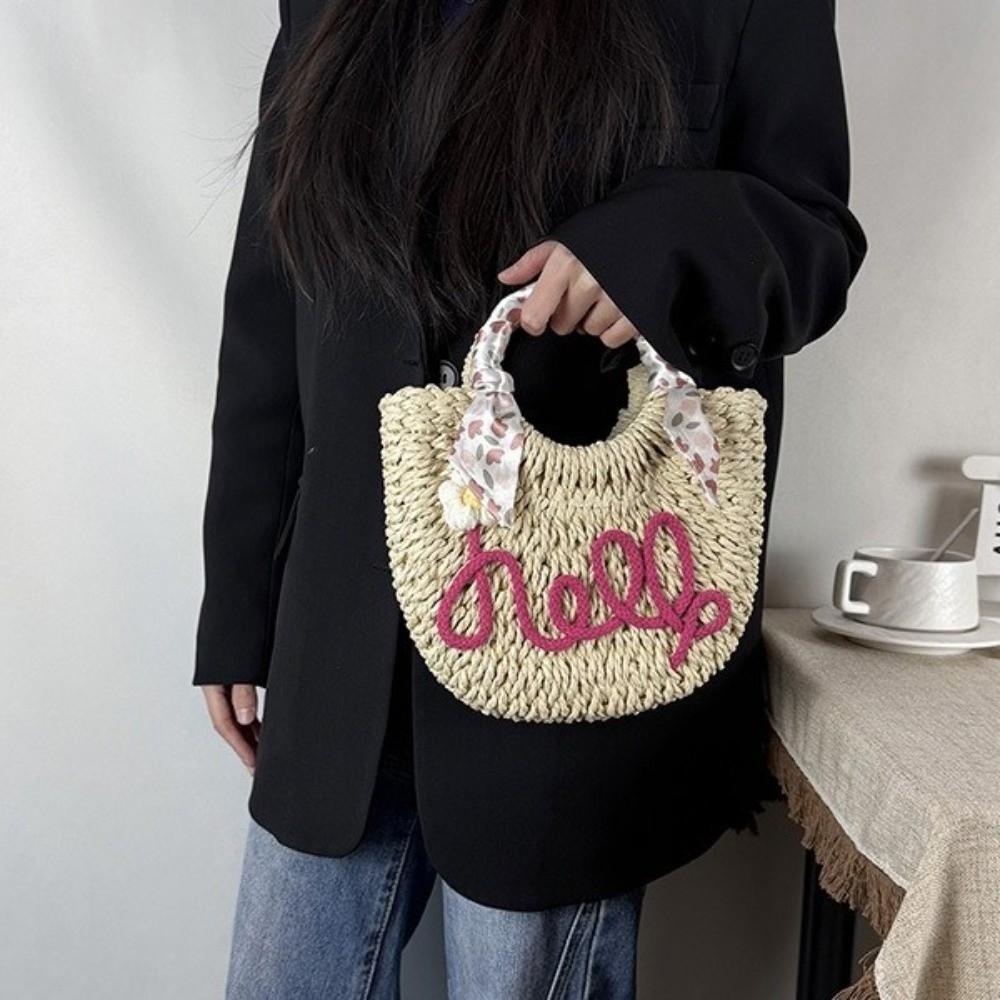 Moon Shaped Woven Underarm Bag Ribbon Knitted Shoulder Bag Fashion Beach Straw Bag Travel