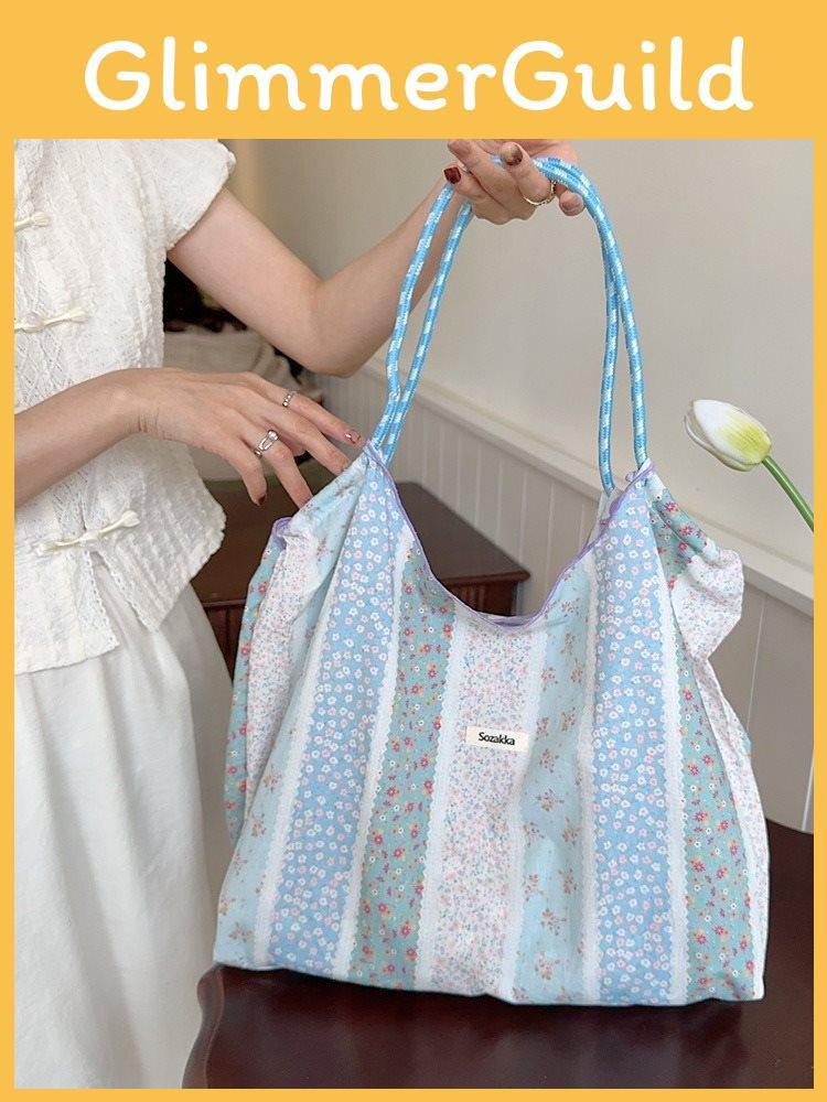 Stylish Korean Floral Printed Tote Bag For Students With Large Capacity And Soft Design