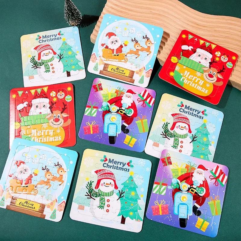 Christmas Jıgsaw Puzzle Compact Present Ideal for Children s Playthings DO-IT-YOURSELF Paper Present Factory 16 Pieces Christmas Puzzles Learning