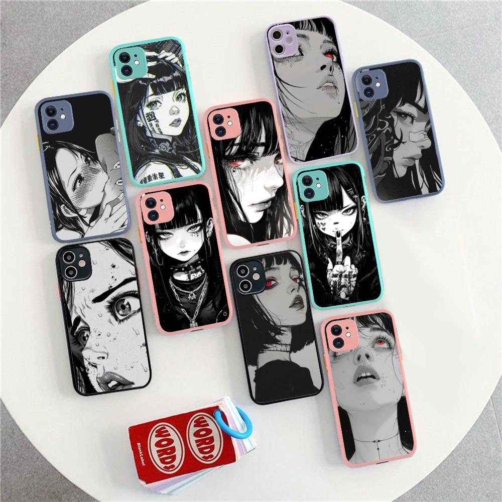 Cute Girl Trend Anime Phone Case For IPhone 14 11 12 13 Mini Pro Max 8 7 Plus X XR XS MAX Translucent Matte Cover