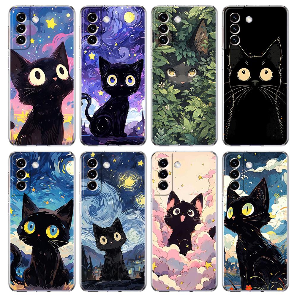 Artistic Black Cat Starry Night Phone Case For Samsung Galaxy S24 Ultra S23 FE S22 S20 S21 5G S10 S9 Plus S10E S8 Clear Cover