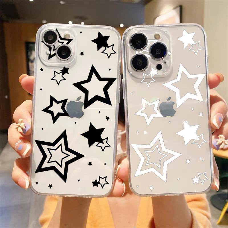 For iPhone 15 16 14 13 12 mini 11 Pro Max XS X XR SE 7 8 Plus Silicone Clear Cover Style Stars Pattern Luxury Phone Case